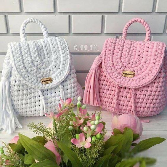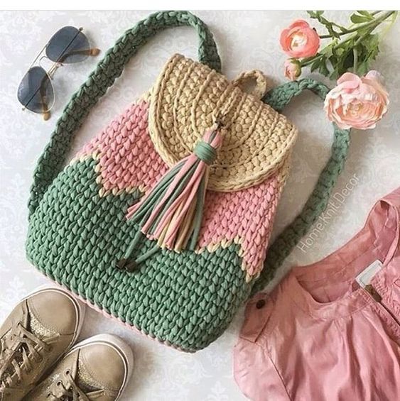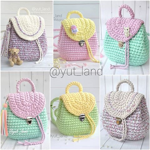 Яркие вязаные рюкзачки из трикотажной пряжи: идеи