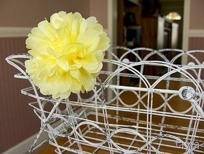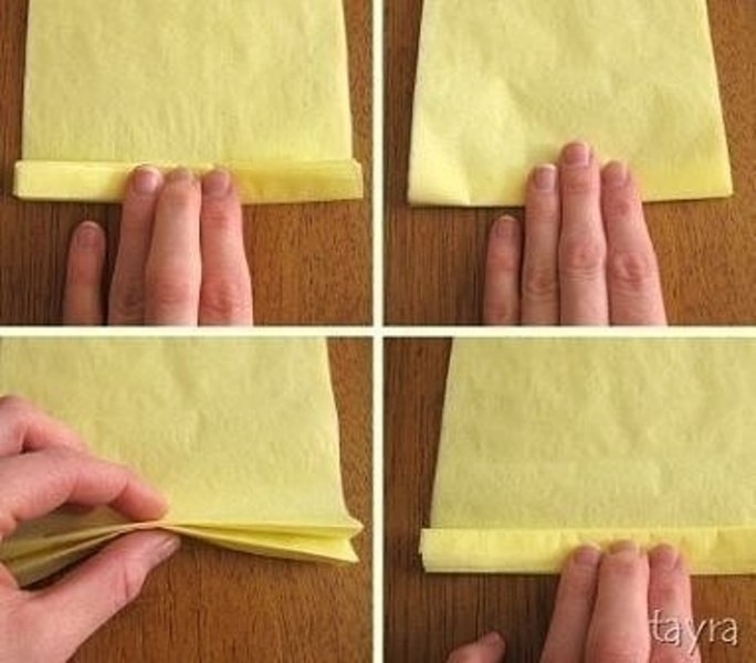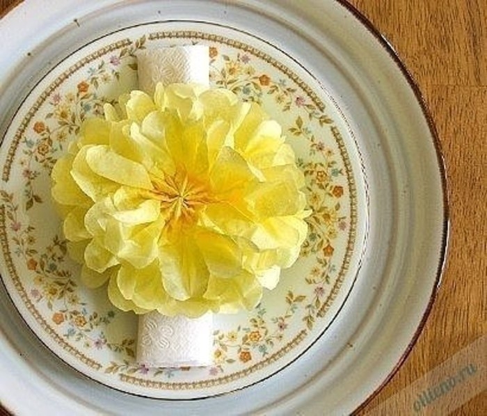 Желтые цветы из салфетокЖелтые цветы из салфеток создаются элементарно при помощи степлера.