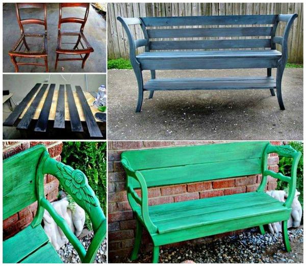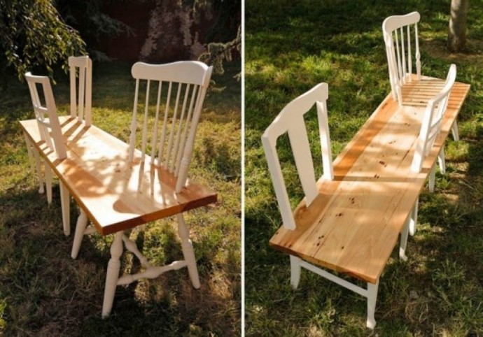 Лавочка из старых стульев - это прекрасный вариант дать вещам вторую жизнь
