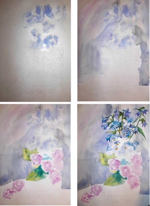 Мазки акварелью таких нежных тонов способствуют умиротворению и расслаблению после тяжелого напряженного дня.