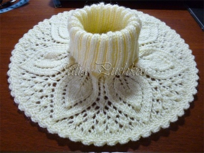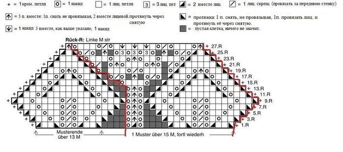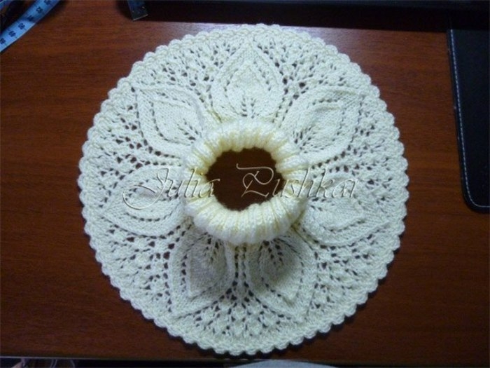 На спицах 105 петель (7 раппортов узора) . Удобнее перейти накруговые спицы.
