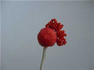 Теперь берём иголку, делаем прокол в нашей заготовке, пучок из бисера обмакиваем в клей ПВА и вставляем в прокол. Вот и всё. Шарик готов. А дальше-ваша фантазия. Вместо круглого шарика можно сделать овальный.