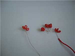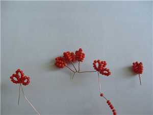 Пока шарик сохнет, набираем на проволоку бисер и делаем 3 петельки из 9 бисерин которые скручиваем на 0,7 см. Получаем пучок, состоящий из 3 петель.