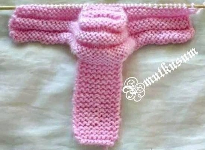 Связаны полностью на 2-х спицах. 1. Набираем 35 петель и вяжем платочной вязкой ,прибавляя по краям и по обе стороны от центральной петли( по одной петле,через ряд - 3 раза). Дол...