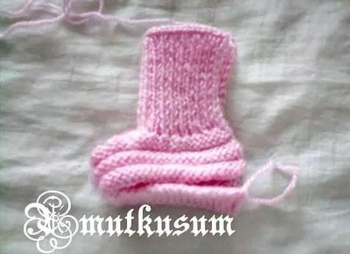 Бесшовные пинетки спицамиСпицами набрать 6 петель.1-й ряд (изн. сторона): лицевые петли.2-й ряд (лиц. сторона): 1 лиц., прибавить петлю, 4 лиц., прибавить петлю, 1 лиц. = 8 пе...