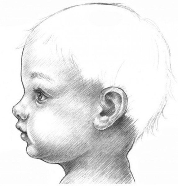Как правильно нарисовать лицо ребенка в профиль
