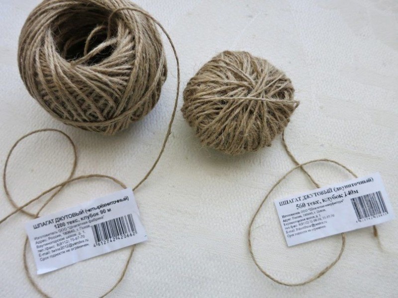 Толщина и цвет джутовой нитки бывает совершенно разной. И так же разный метраж.