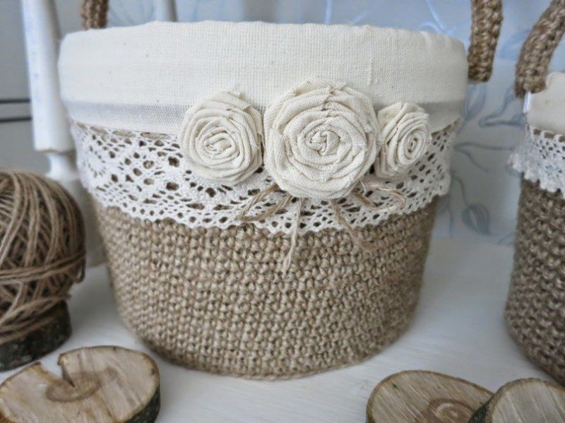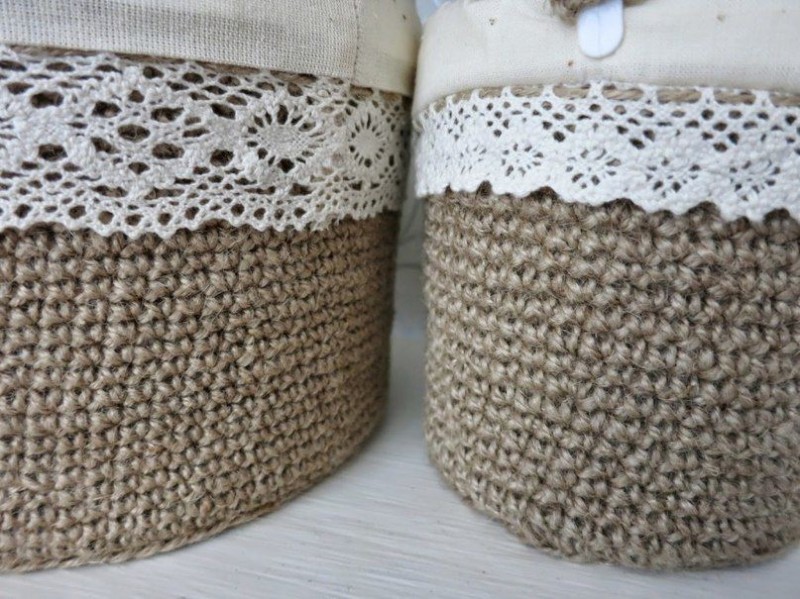 Джутовые корзины из пластиковых вёдер: мастер-класс