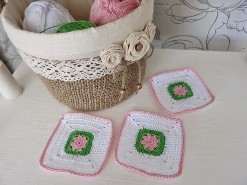 Вязать джутовыми нитками не просто. Это ведь не обычная пряжа. Поэтому пусть ваша корзинка будет дополнительным, промежуточным видом рукоделия. Связали немножко и отложили.