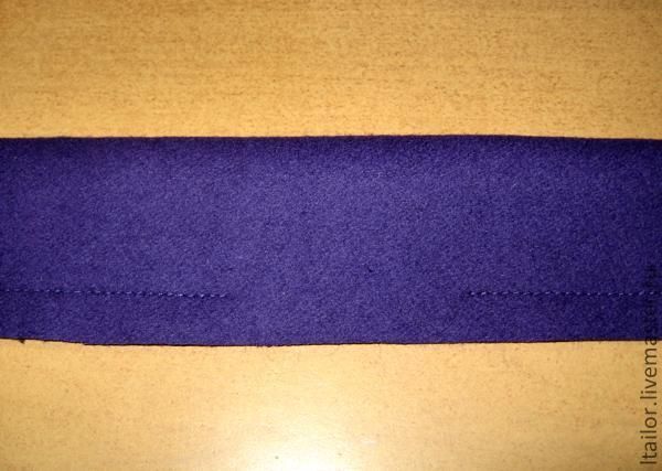 Далее переходим к поясу. Его размер и ширина могут быть практически любыми. Я взяла ширину 4,5 см в готовом виде и длину 140 см., в зависимости от ширины ткани.