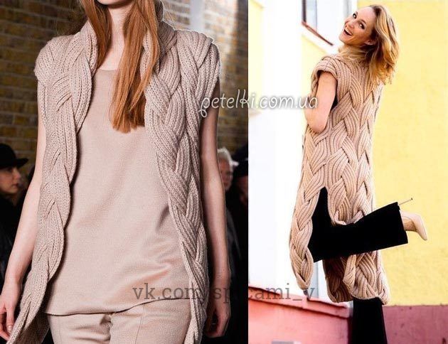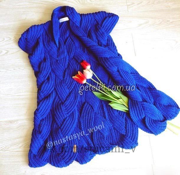 Кардиган - просто бомба! Вы обязательно должные его себе связать. Вяжется он довольно просто - отдельными полосами, которые переплетаются потом в косы и сшиваются между собой.