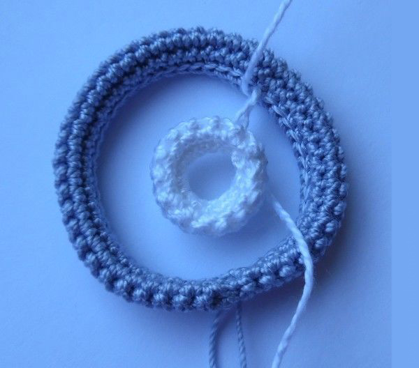 И начинаем провязывать рабочей нитью по очереди, начиная с петли на крючке.