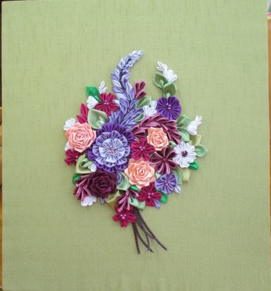 Картина в технике канзаши "Букет" может вдохновить узнать об искусстве канзаши больше.