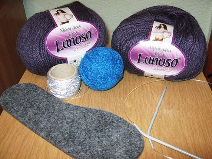 1. Выбирая пряжу для будущего изделия, желательно отдать предпочтение 100% шерсти или шерсти с добавлением акрила. В таком случаи тапочки получатся очень теплыми, и прослужат не один год.