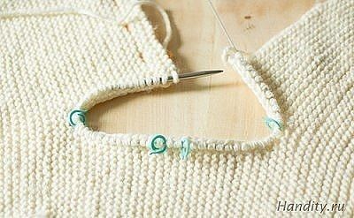 5 Теперь примерно делим полочки на три равные части и ставим по два маркера. Там где мы проставили маркеры мы будем делать прибавки, после чего все маркеры снимаются и остаются только центральные на спинке изделия.