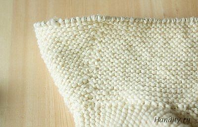 9 После того как вы решили, что достаточно начинаем вязать прямо и закрываем петли, оставляем нитку для сшивания.