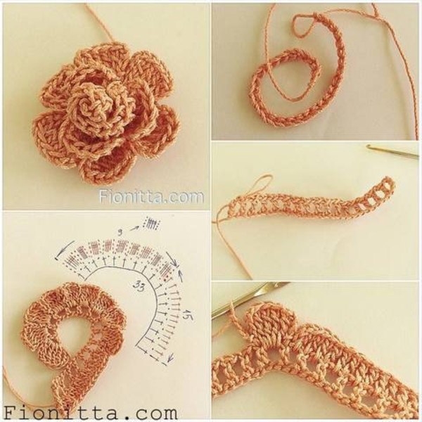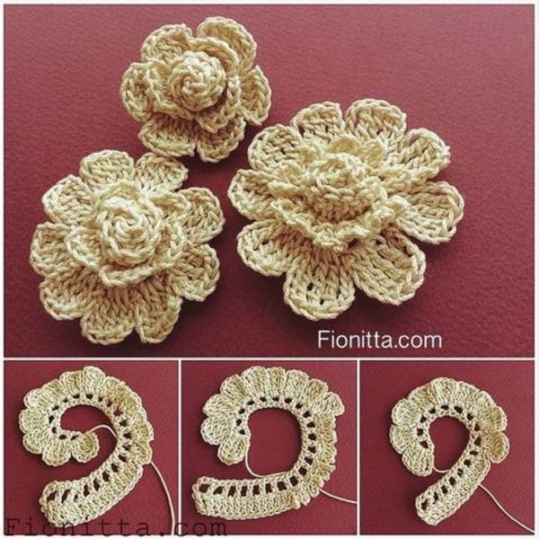 Вяжем крючком розы, чтобы украсить трикотажные вещи, подхваты для штор и многое другое.
