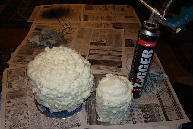 1. Заливаем, и обливаем обе ёмкости пеной. Дать высохнуть.