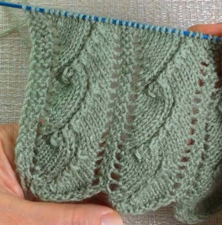 Техника вязания: накиды, 3 петли вместе, платочная вязка и лицевая гладь.