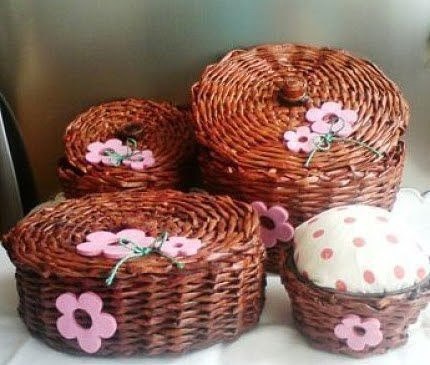 Корзинки из газетных трубочек