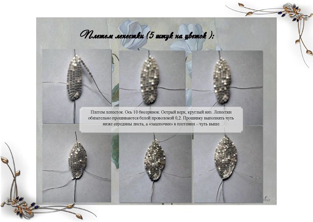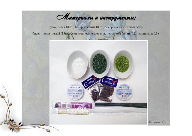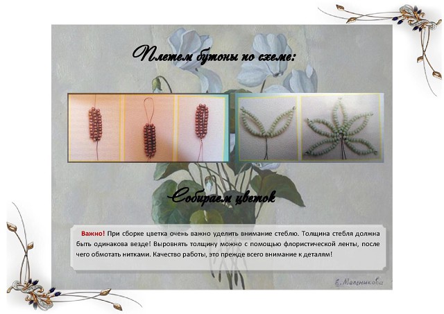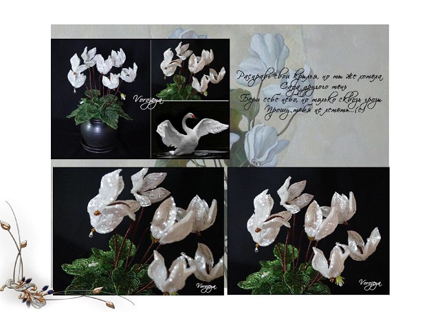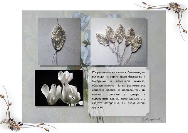 Белый цикламен из бисера словно танцует своими лепестками, настолько он красив.