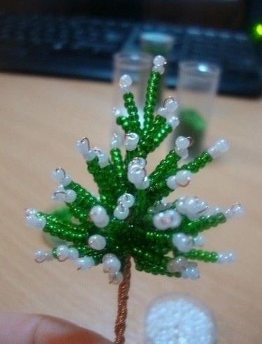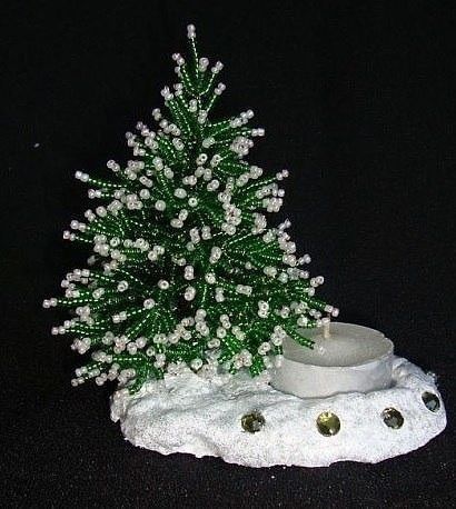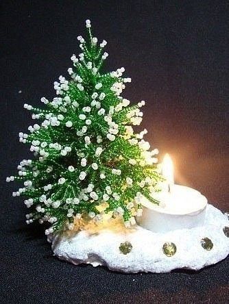 Мастер-класс по снежной елочке из бисера поможет украсить рабочий стол или любую другую поверхность.