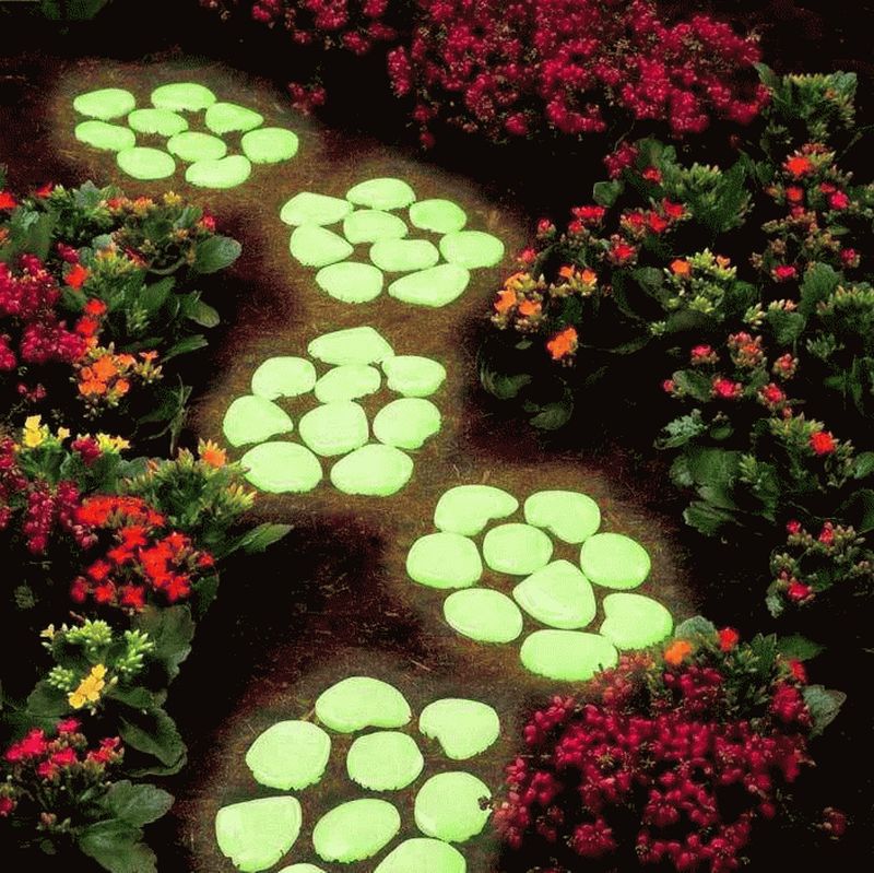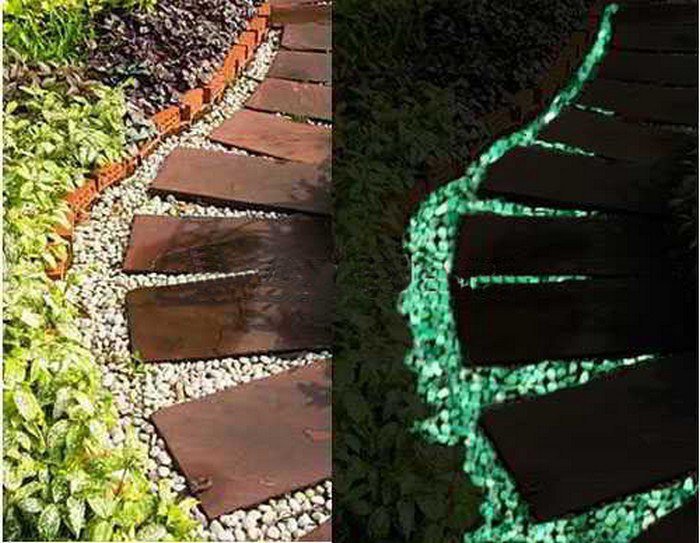 Использование флуоресцентных красок в декоре сада создает интересные варианты подсветки.