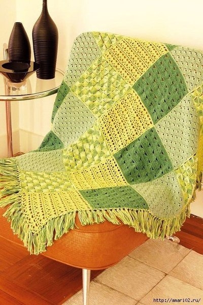 Вязаный крючком пледЭтими квадратными мотивами можно связать и красивый кардиган также.