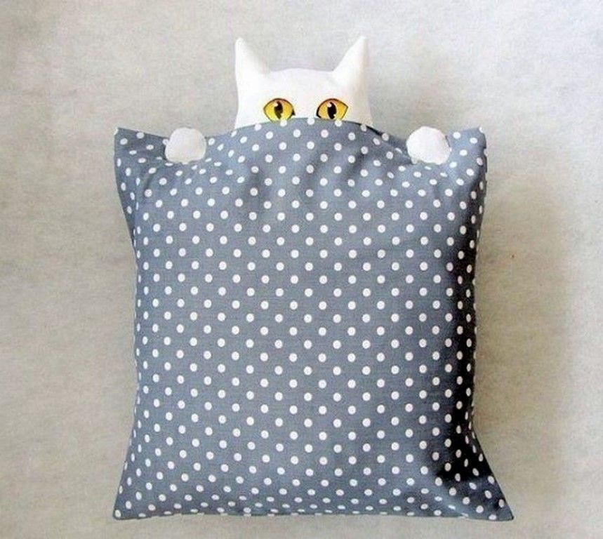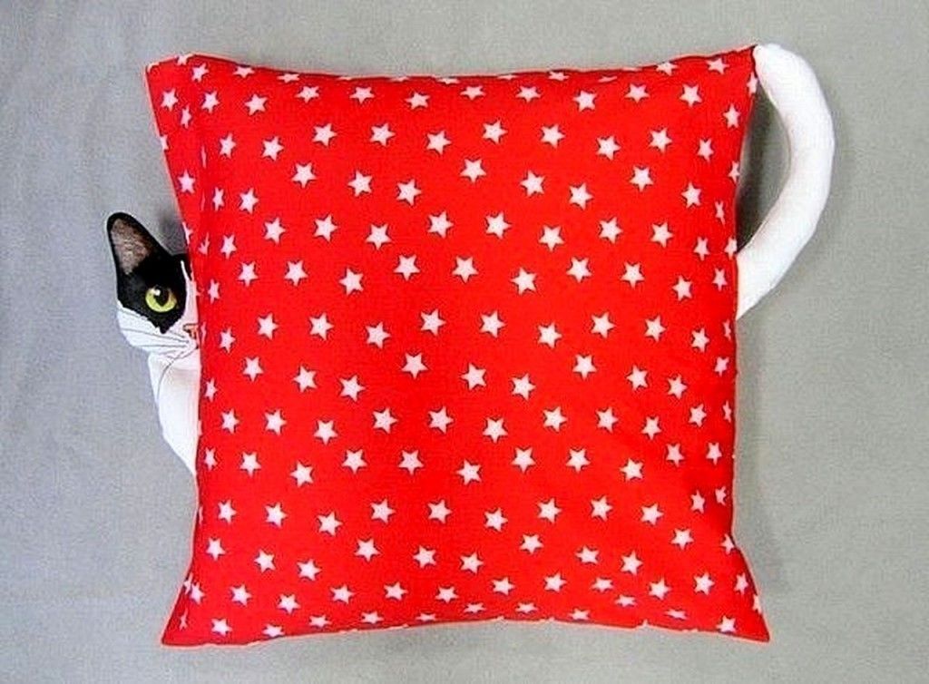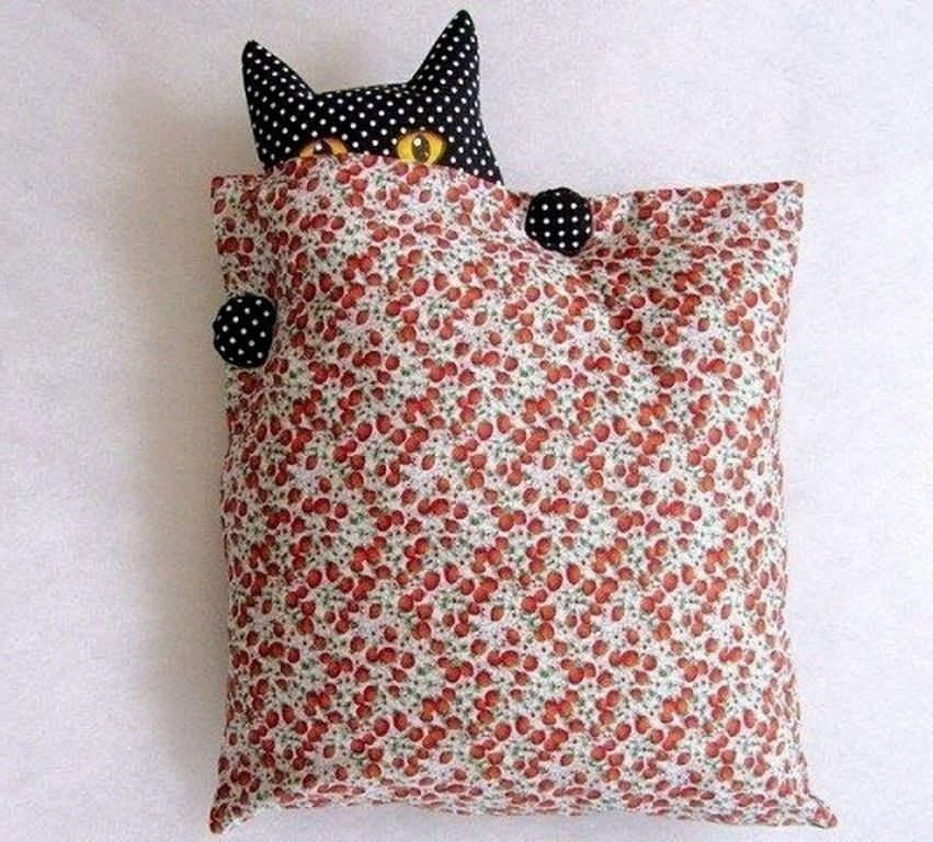 Интересная идея подушек с кошками больше всего понравится любителям озорных пушистиков.
