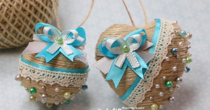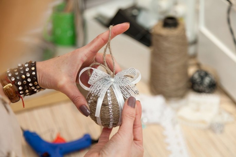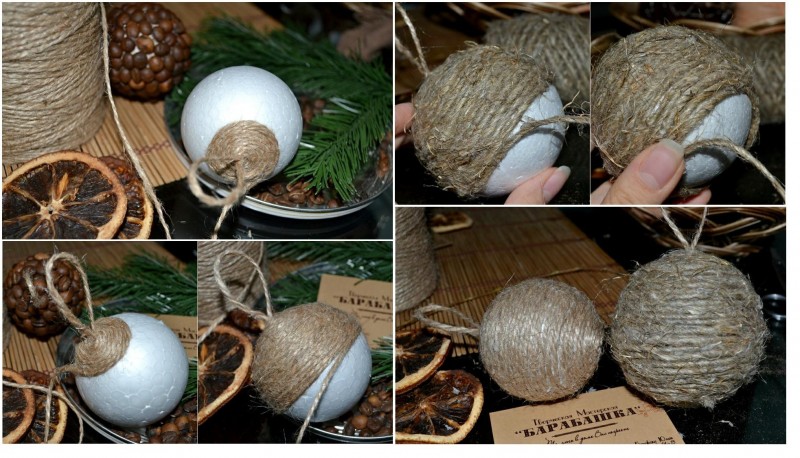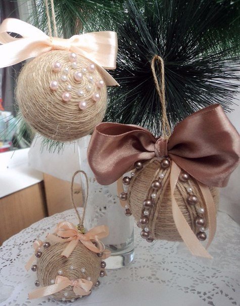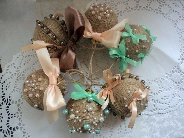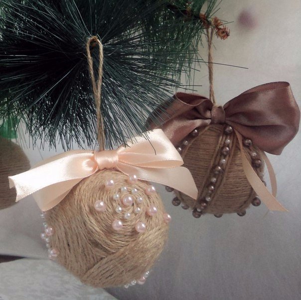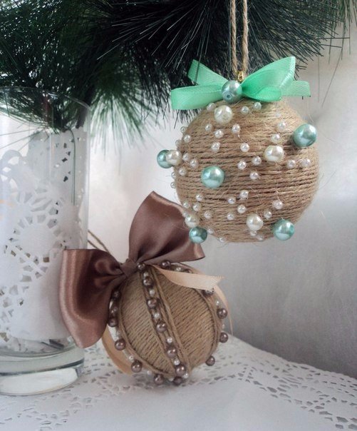 Декор новогодних шариков из шпагата сделает вашу ёлку уникальной.