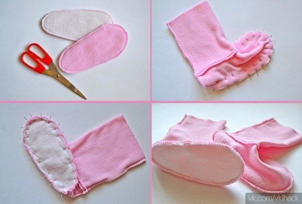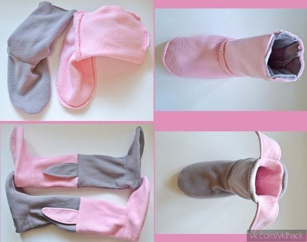 В примере использован флис для основной части, плащевку для подошвы, в качестве утеплителя – слимтекс.