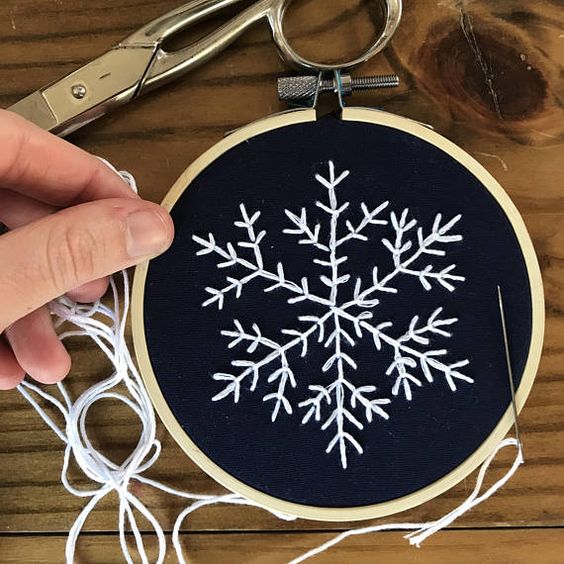 Вышиваем снежинки к новому году и вставляем в рамочки.