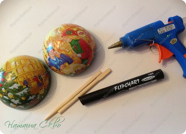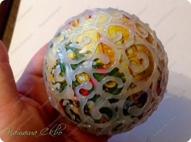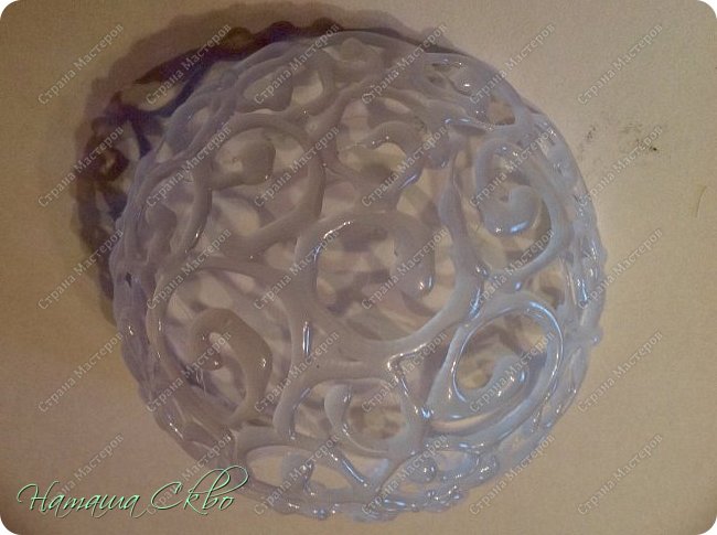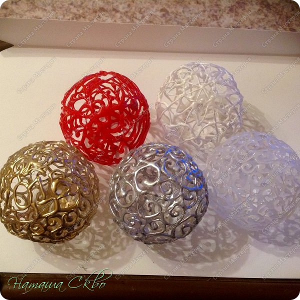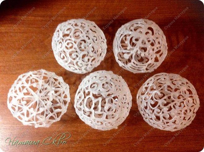 Ажурные шары клеевым пистолетом помогают создать две половинки,
