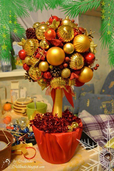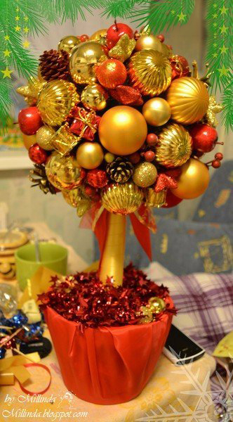 Новогодние дерево из ёлочных шариков настолько восхитительно красиво,