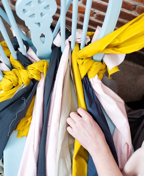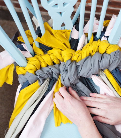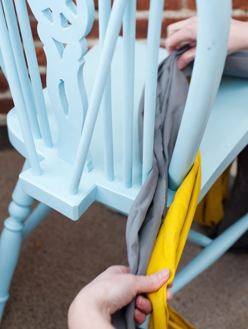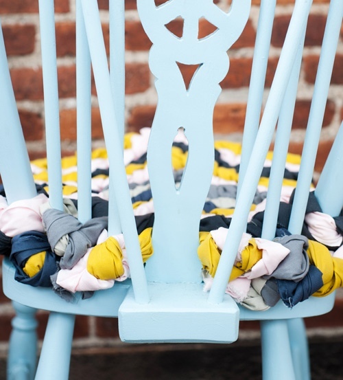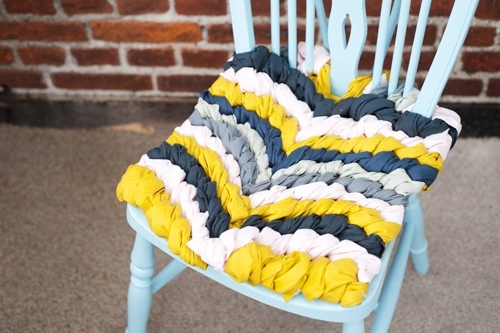 Простую и удобную сидушку для стула можно сделать из полос ткани.
