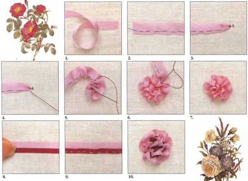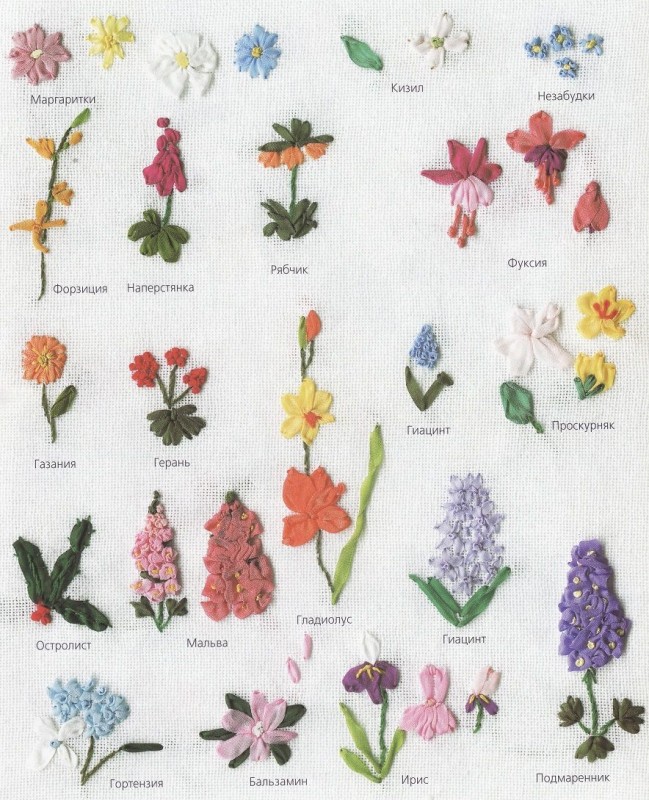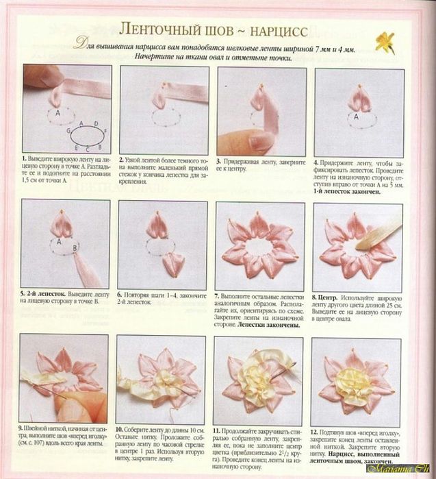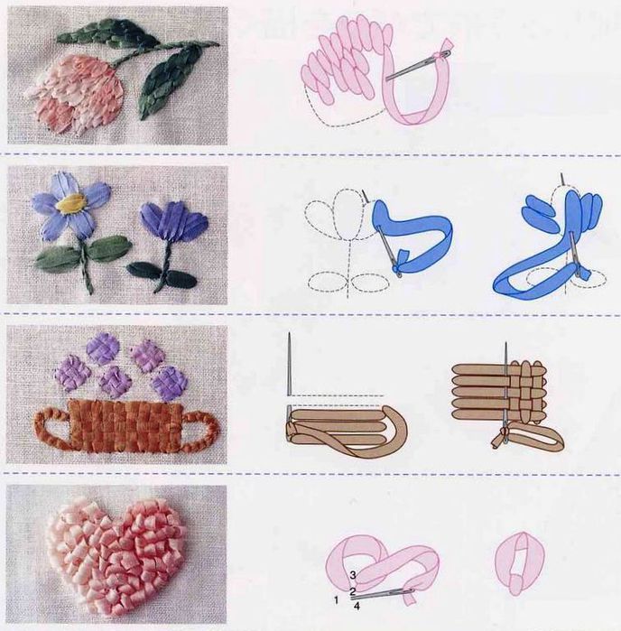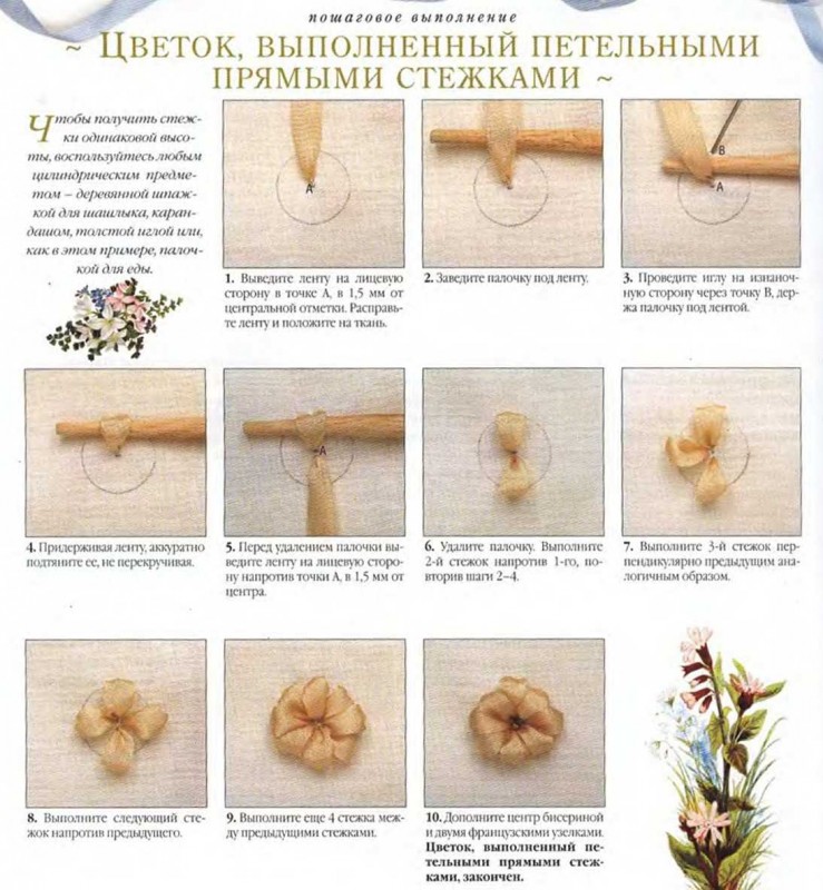 Вышивка изумительно красивых цветочков лентами