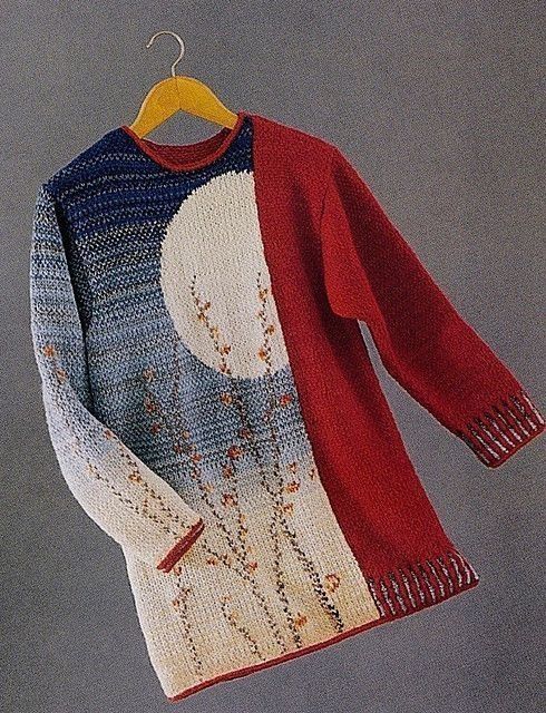 Учимся вязать в технике интарсии на примере моделей с большими цветными участками, выполненными платочной вязкой.