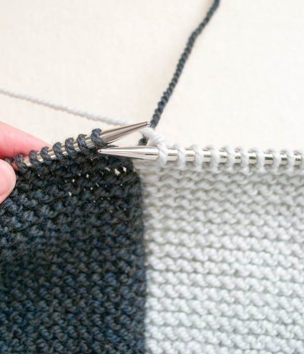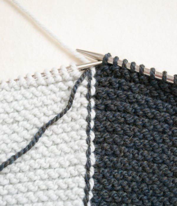 Платочная вязка рядами в прямом и обратном направлении, при которой во всех рядах все петли выполняются лицевыми — идеальный вариант для обучения вязанию в технике интарсии.