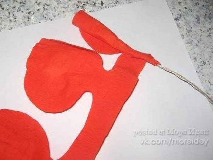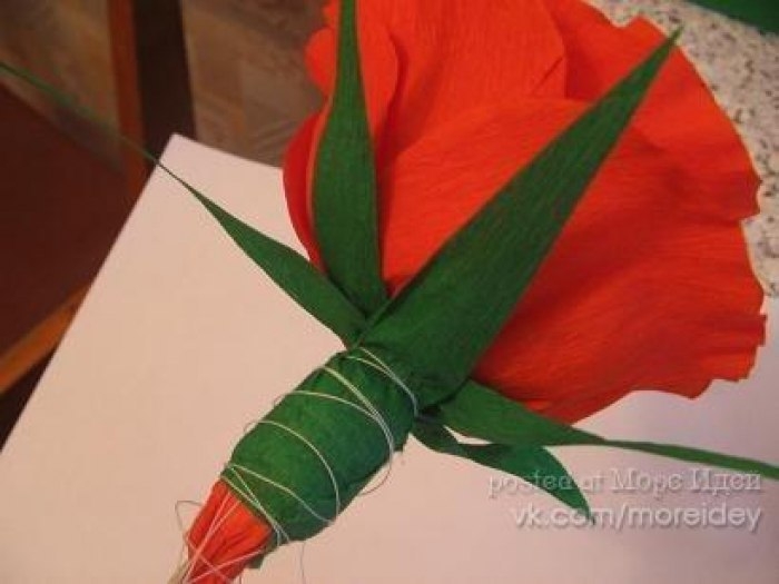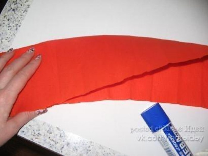 Роза из гофрированной бумаги: мастер-классЭта лента дополнена полупрозрачной лентой, благодаря чему выглядит более презентабельно.