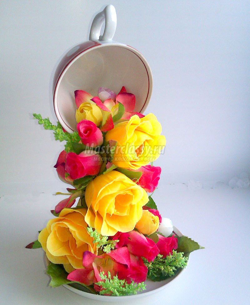 Парящая чашка "Цветочный водопад" может быть с ягодками или любыми другими красивыми парящими в водопаде предметами.