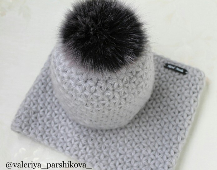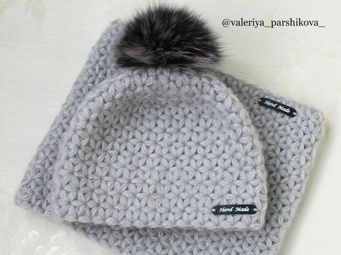 Прекрасная шапка узором "Пышные звёздочки" согреет не только уши в морозы, но сделает теплее взгляды прохожих.