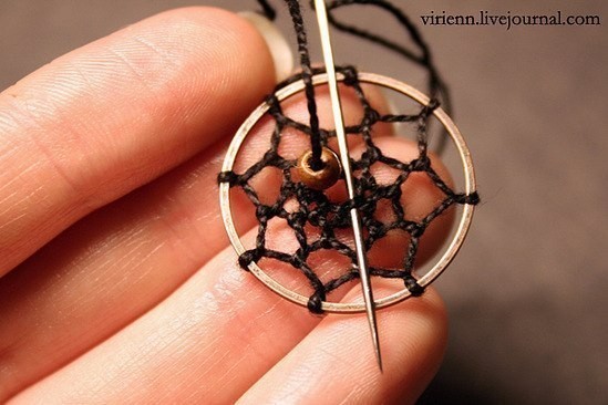 Прекрасный ловец сновЭтот ловец снов примечателен вязаным кружевом в центре.