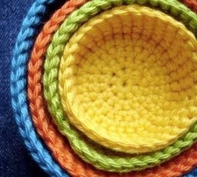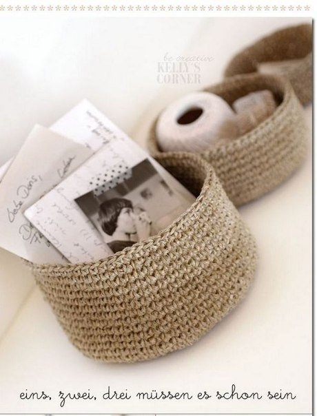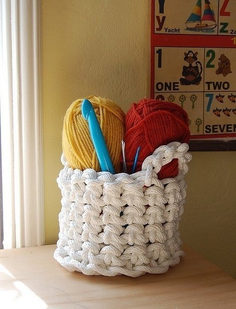 Корзины из пряжиКорзины из пряжи делаются на основе картонного шаблона.Если в дальнейшем вы хотите их стирать, то шаблон стоит делать из полимерной пленки.