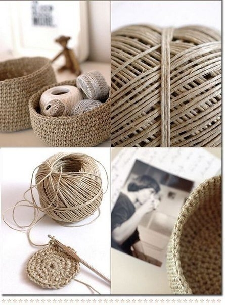Джутовые корзиныДжутовые корзины можно создавать на основе обычных пластиковых ведер.Например, от майонеза.