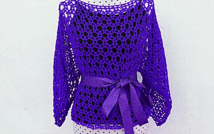 Ажурный узор-сетка крючком для легких вещей и накидок.