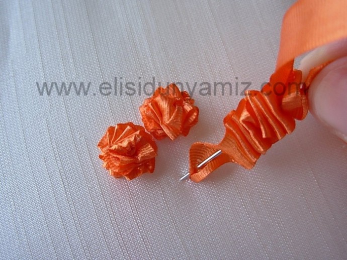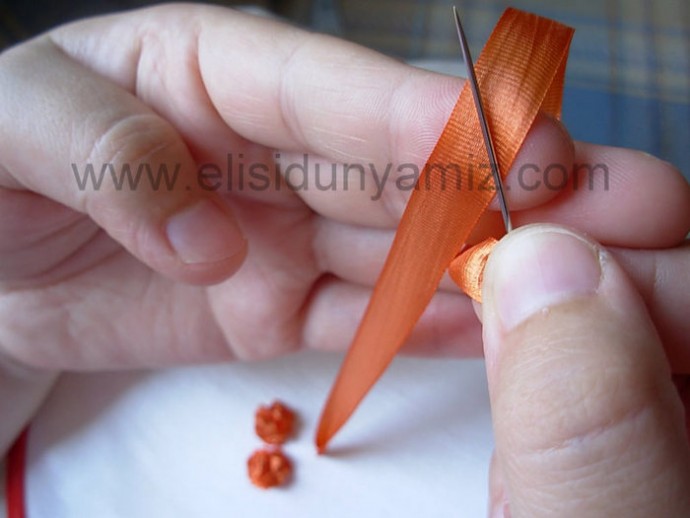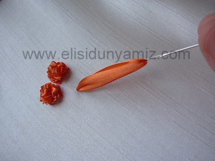 Вышиваем лентами маленькие розочки, которые будут отлично смотреться как между более крупными вышитыми элементами, так и самостоятельно.
