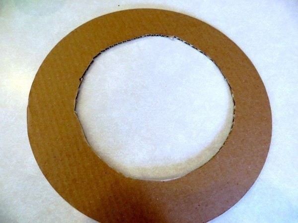 Внутреннюю видимую часть края картона по кругу можно проклеить косой бейкой, например.