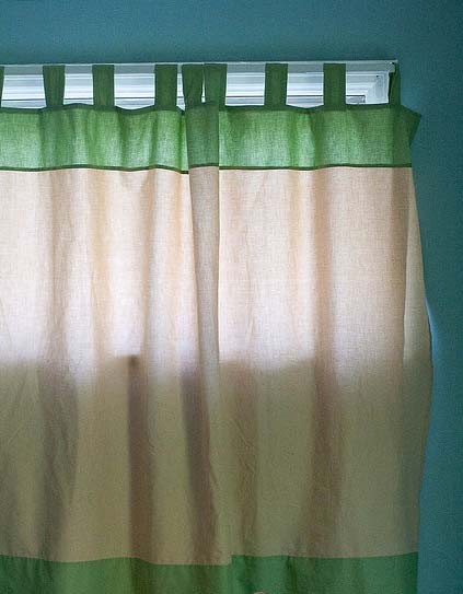 Шторы ручной работы на петлях могут быть выполнены в контрастных цветах