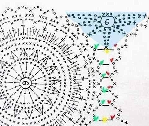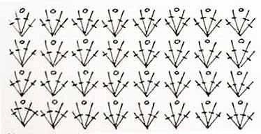 К сожалению, фото больших размеров на сайт добавлять не получается, поэтому я вырезала кусочек из схемы выше, которого достаточно, чтобы крупным планом увидеть все вязание.