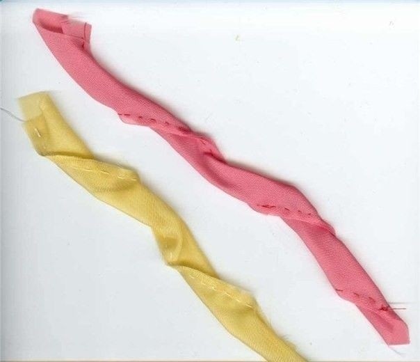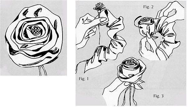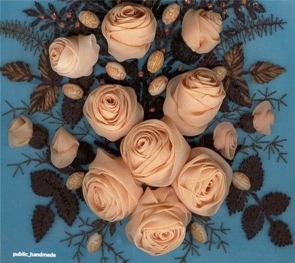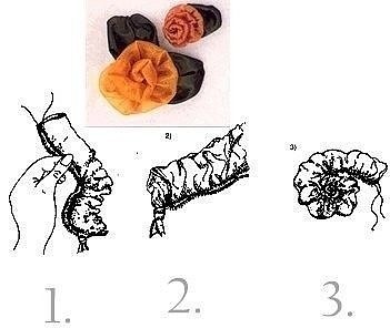 Очень плохое описание. Я и без вас знаю как скручивать ленту, а вот как внизу ее закреплять- ничего не пойму. То ли клеем. то ли нитками, но низ не держится. Может, надо к ткани крепить. А у вас — через пень колода...